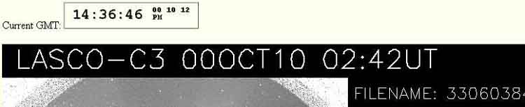 Noticed C2 is current but C3 out since 8:00UT, Look at last Navy C3, whole left side blocked out and feeds end there for now. [EDITOR: since this email the Navy image, usually live and current raw data, has been replaced with frame, 10/10 02:42, captured by the SOHO cameras the day before the torpedo incident. This data-intact C3 image is MOST ANOMALOUS!]