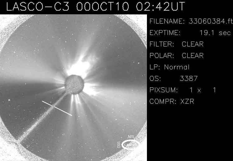 I did find what might be on comet on EIT images betweem 9:00UT and 10:00UT on yesterdays images... look at between 7 o'clock and 8 o'clock close in to the solar disk on those images.