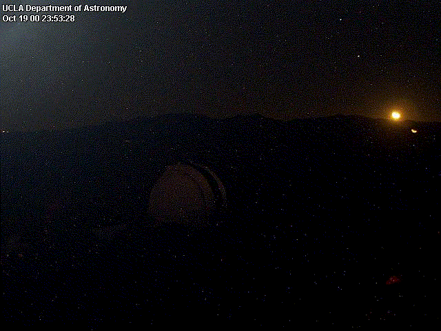 Anomaly Caught on Mt. Wilson Cam and Animated. Moon? Object near the moon? Observers say bogey shot vertically from horizon to full few in seconds. SLEUTHS? Overcast here in Seattle, alas, no observation.